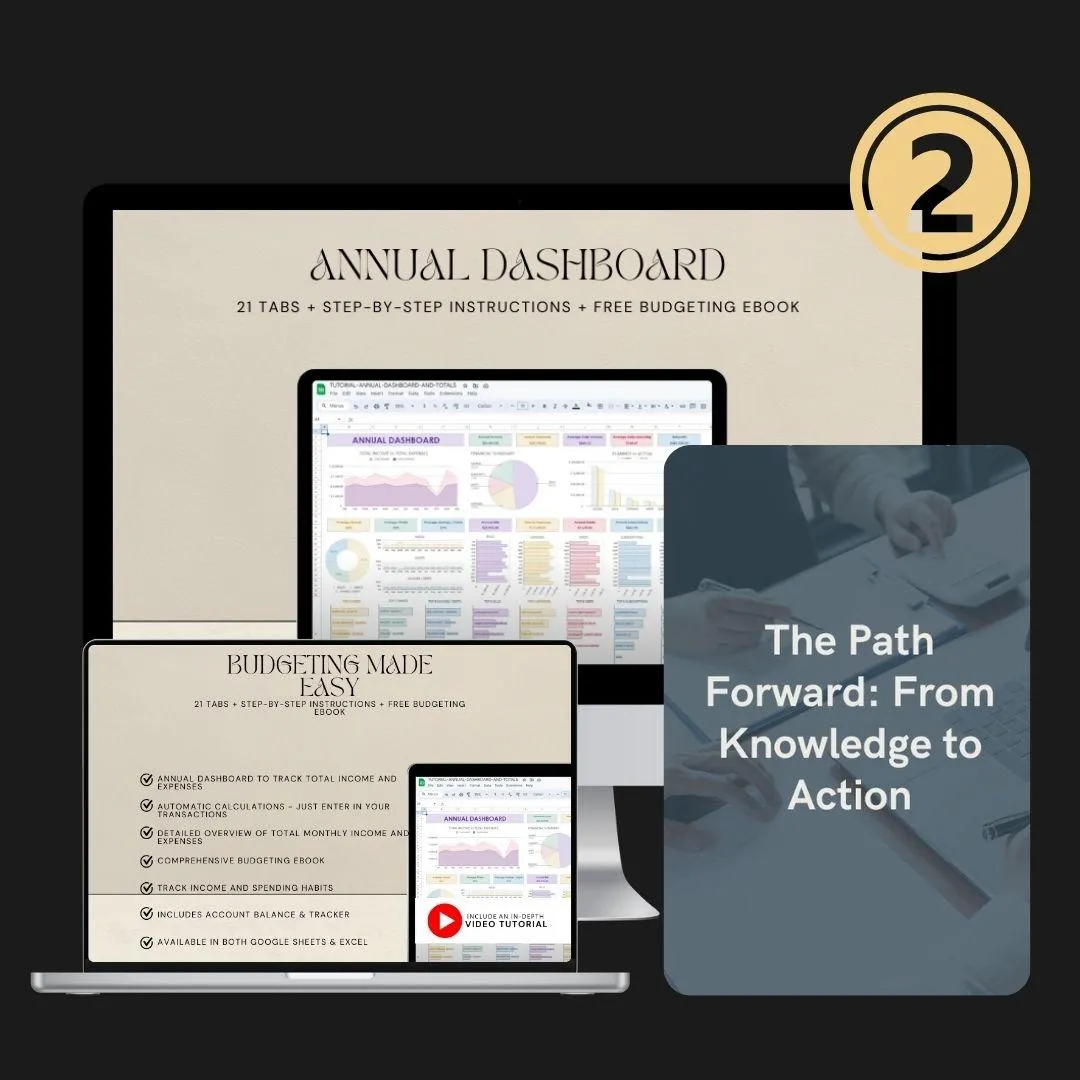 Along with the eBook and Free Annual and Monthly Budget Tracker Bundle, get special included extras that turbocharge your success. These are designed to complement your learning and give you an edge in transforming your financial future. Act now to unlock these invaluable tools!